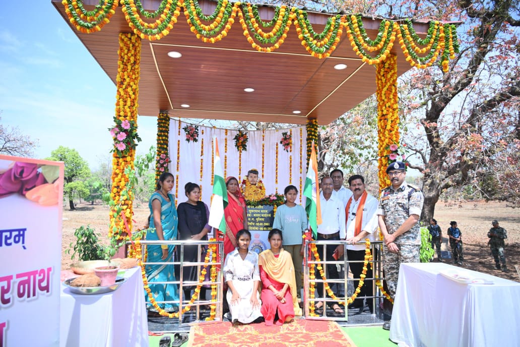 रायपुर //0 उपमुख्यमंत्री विजय शर्मा ने दंतेवाड़ा जिले के तुमनार में बस्तर फाइटर्स के जांबाज आरक्षक अमर शहीद स्व. सुबरनाथ यादव जी की स्मृति में निर्मित शहीद स्मारक के तहत उनकी प्रतिमा का अनावरण किया। इस अवसर पर परिवार के सदस्य, क्षेत्र के गणमान्य व्यक्तियों, स्थानीय नागरिकों, स्कूली बच्चों और बस्तर फाइटर्स के जवानों ने भाग लिया।