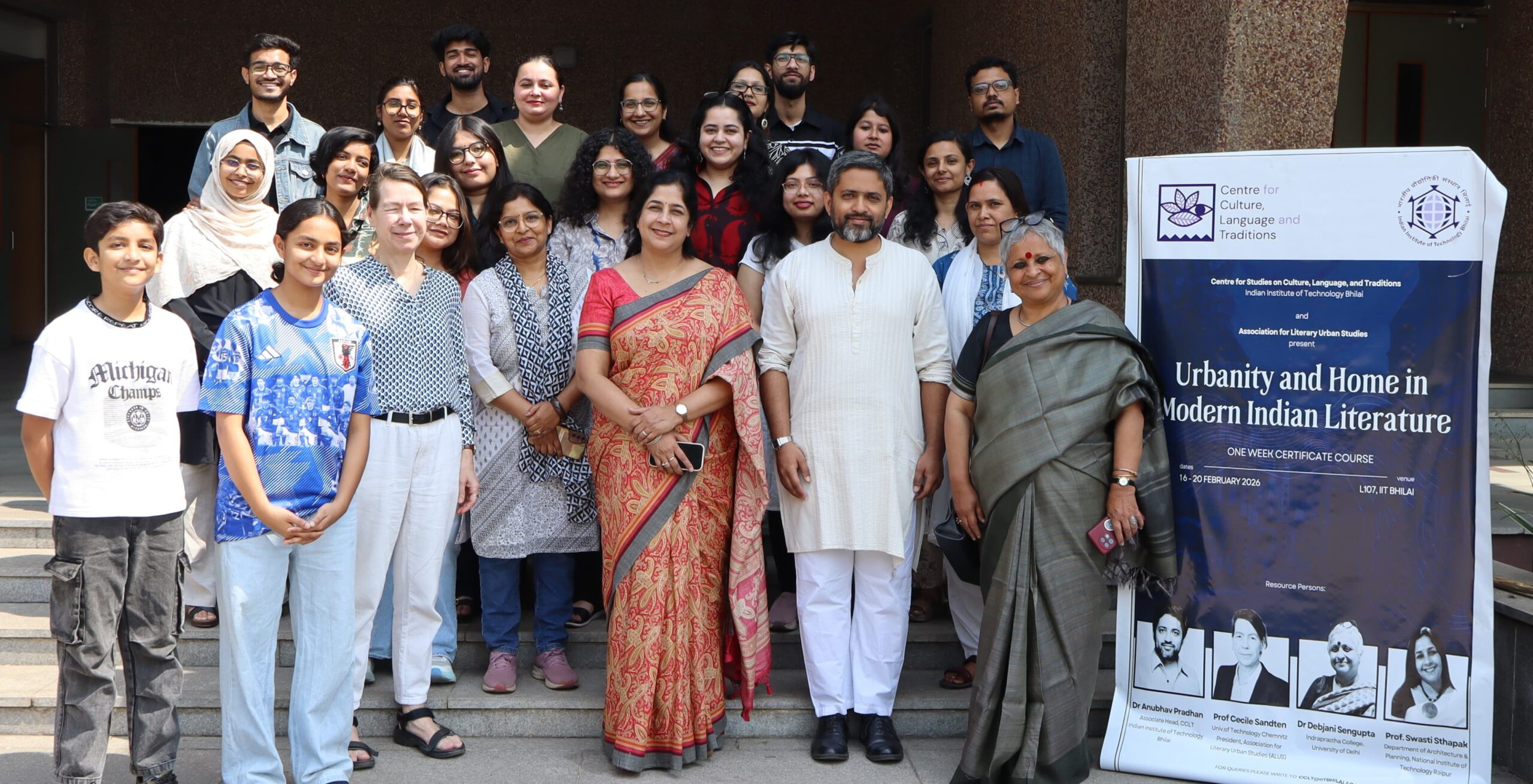 भिलाई // संस्कृति, भाषा और परंपरा अध्ययन केंद्र (CCLT), भारतीय प्रौद्योगिकी संस्थान भिलाई के सहयोग से, तथा एसोसिएशन फॉर लिटरेरी अर्बन स्टडीज़ (ALUS) के साथ मिलकर, 16 से 20 फ़रवरी 2026 तक पाँच दिवसीय आवासीय प्रमाणपत्र पाठ्यक्रम “Urbanity and Home in Modern Indian Literature” का आयोजन किया गया। इस पाठ्यक्रम का उद्देश्य विद्यार्थियों को साहित्यिक शहरी अध्ययन (Literary Urban Studies) में शोध करने के लिए आवश्यक सैद्धांतिक आधार प्रदान करना था। इसमें आधुनिक भारतीय साहित्य में “घर” की अवधारणा और उसके विभिन्न अनुभवों को किस प्रकार प्रस्तुत किया गया है, इस पर विशेष ध्यान दिया गया। प्रतिभागियों ने “घर” के विभिन्न अर्थों को स्थान और वास्तुकला के संदर्भ में समझा तथा यह भी देखा कि ये भौतिक परिस्थितियों और भावनाओं से कैसे जुड़ते हैं। साथ ही, चयनित साहित्यिक कृतियों का अध्ययन करते हुए उन्होंने यह समझा कि इन अनुभवों को किस प्रकार अभिव्यक्त किया गया है, और आधुनिक दक्षिण एशिया में आवासीय संरचनाओं के विकास को भी परखा।